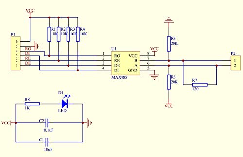 a bordo di chip MAX485 è un basso consumo di energia per le comunicazioni RS-485, slew-rate ricetrasmettitore.