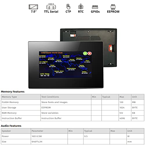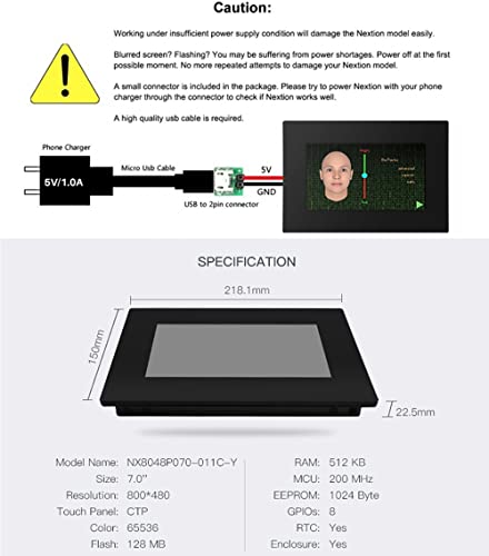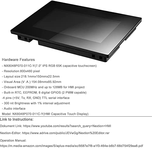 Aihasd Nextion 7.0 inch LCD Module Touch Screen Display Intelligent Series HMI IPS RGB 65K Capacitive Touchscreen Pannel With Enclosure (NX8048P070-011C-Y)