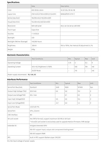 I prodotti Nextion della serie Intelligent hanno un hardware più potente in termini di MCU, memoria Flash e SRAM rispetto alla serie Basic e alle serie Enhanced. Supporta funzioni e funzioni software avanzate come componenti trasparenti, effetto di caricamento laterale, spostamento e trascinamento dei componenti, ecc. MCU integrato da 200 MHz e fino a 128 MB per progetti HMI, RTC integrato, EEPROM, 8 GPIO digitali (compatibili con 2 PWM)