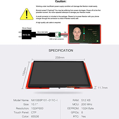 Aihasd Nextion Intelligente Display 10,1" pollici Touch Screen Capacitivo 1024x600 Seriale LCD-TFT Modulo Display HMI Supporta Audio Video NX1060P101-011C-I