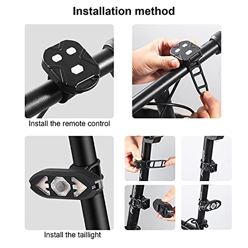 Fanale posteriore per bicicletta con telecomando: viene fornito con un telecomando wireless di 3 pulsanti. Le frecce sinistra e destra corrispondono ai segnali di direzione sinistra e destra, e il pulsante circolare può cambiare le 3 modalità del fanale posteriore. Può essere installato sul manubrio per controllare la luce posteriore della bici, è possibile accenderla in base alle condizioni stradali durante la guida, che è conveniente per il funzionamento.