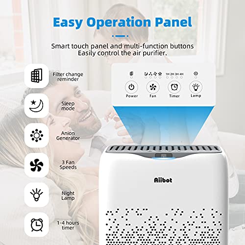 Aiibot Purificatore d'aria,Con 2 Filtri HEPA H13 e Carbone Attivo, 60㎡,Purificatore d'Aria a ioni Negativi per la Casa Con Timer,Elimina Cattivi Odori, Polvere,Peli di Animali,Virus, Allergeni