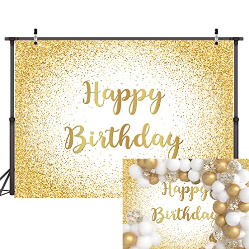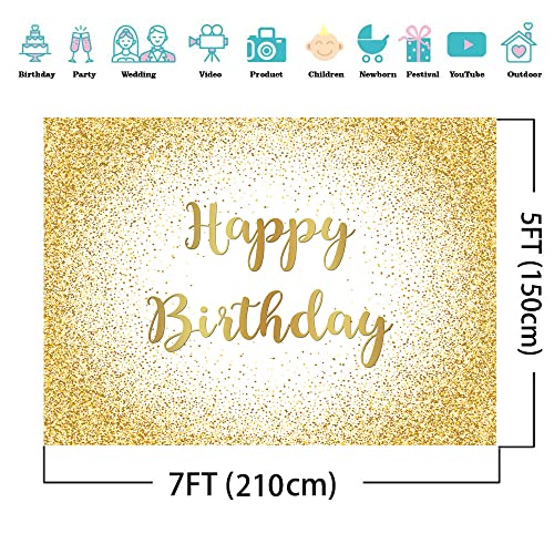 AIIKES 7x5FT Buon Compleanno Sfondo Oro e Bianco Fotografia Sfondo Oro Bokeh Sfondo Adulto Del Partito Delle Donne Banner Torta Decorazione Della Tavola Articoli Galleria Fotografica Props 12-527
