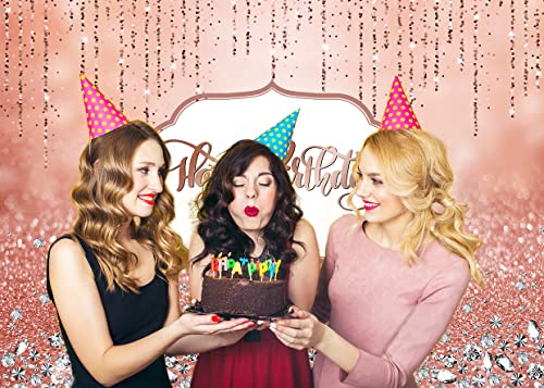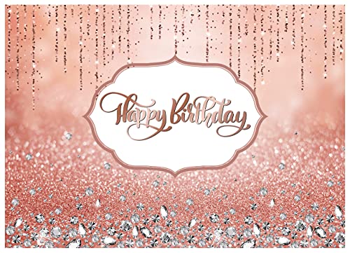 AIIKES 7x5FT Rosa Oro Rosa Festa di Compleanno Sfondo Oro Diamante Buon Compleanno Sfondo Dolce Ragazza Neonato Decorazione Festa di Compleanno Sfondo Studio Puntelli 12-077