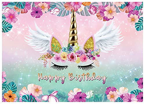 AIIKES 8x6FT Sfondo di unicorno Decorazioni di compleanno di unicorno Sfondo neonato Decorazioni di compleanno per bambina Sfondo di tema di unicorno Sfondo di muro di fiori di unicorno 11-560