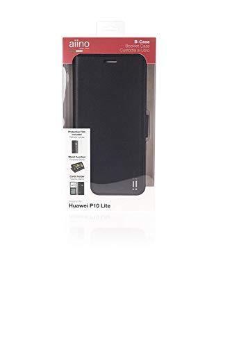 Aiino Italian Ideas AIHUP10LCV-BCBK Custodia Booklet B, Cover per Huawei P10 Lite, Case Anticaduta/AntiGraffio e Antiscivolo, Effetto Finta Pelle, Nero