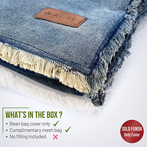 Aiire Fodera Pouf Poltrona Design - Puffo per Sedersi Gigante Senza Imbottitura, Puff Sacco Camera da Letto per Bambini o Gamer - Bean Bag XXL per Lettura o Cuscini da Pavimento Denim