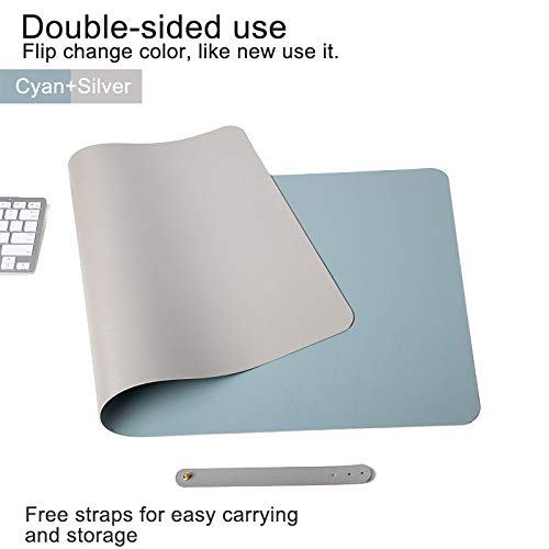 Aikeys Sottomano Scrivania Tappetino per Mouse Pad Grande in Pelle PU Bifacciale 70x35cm Tappetino da Scrivania per Ufficio/Casa Tappetino da Tavolo Sottomano da Ufficio Impermeabile Ciano/Argento