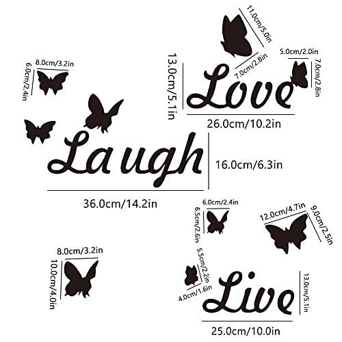 [Set]: set di decorazioni per adesivi murali farfalla 3D, contenente 9 adesivi con farfalle nere, adesivi con 3 parole: "LOVE" "LAUGH" "LIVE". Molto adatto per la decorazione della parete, sotto il sole, l'effetto tridimensionale nero sarà migliore~