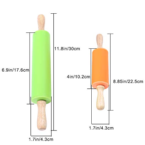 Multi-size: la confezione contiene 2 diverse dimensioni di mattarello da cucina. Verde 4,3x17,6 cm/1,7x6,9 pollici (lunghezza totale 30 cm/11,8 pollici), arancione 4,3x10,2 cm/1,7x4 pollici (lunghezza totale 22,5 cm/8,85 pollici), per soddisfare le tue esigenze quotidiane.