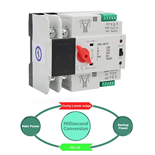 Ailao Interruttore di Trasferimento, Dual Power Automatischer Transferschalter Unterbrechungsfreier 2 Wege Controller ZGQ5-100/2P 220V