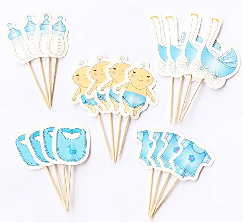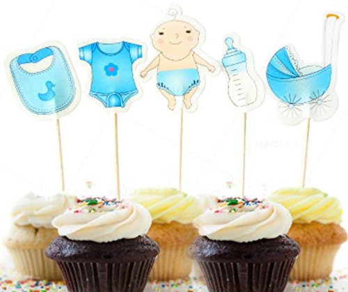 AILEXI Fatto a Mano 20 conteggi Torta Toppers Decorazione per Torta Cupcake e Gelato - Baby Shower Boy