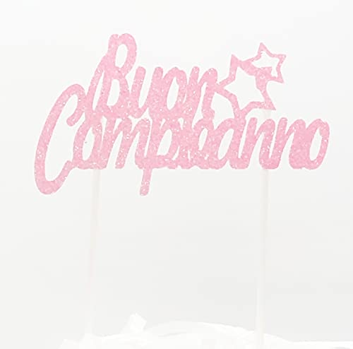 AILEXI A Mano 1 Torta Glitter Decoro Topper Festa Toppers Decorati Happy Birthday in Italian - Buon Compleanno Luccichio Rosa II