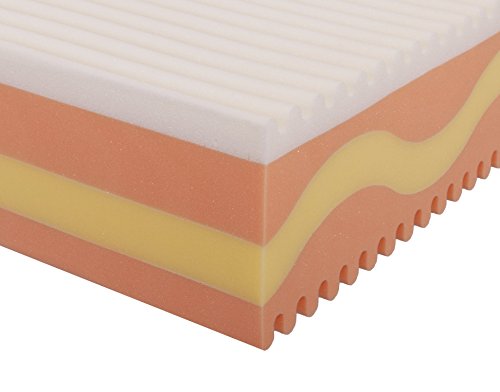 Materasso composto da lastra in memory foam e da una lastra multionda in waterfoam con rigiditö H2