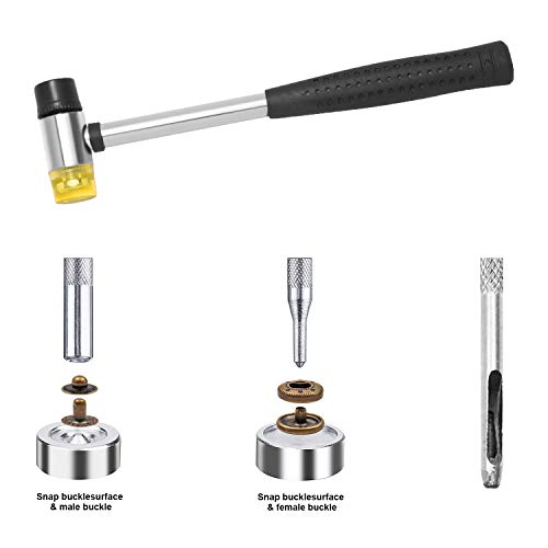 lo strumento di punzonatura aiuterà a forare dei prodotti bersaglio, poi a martellare e spingere i pulsanti a pressione su entrambi i lati.