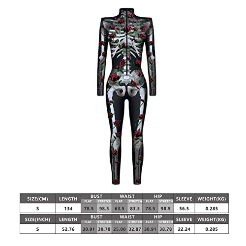 ♕Stampa digitale 3D realistica: caratterizzata da un design con cerniera posteriore per un facile utilizzo, la tuta da scheletro da donna utilizza un girocollo e un design a maniche lunghe, progettato con una stampa digitale 3D realistica sul davanti e sul retro.