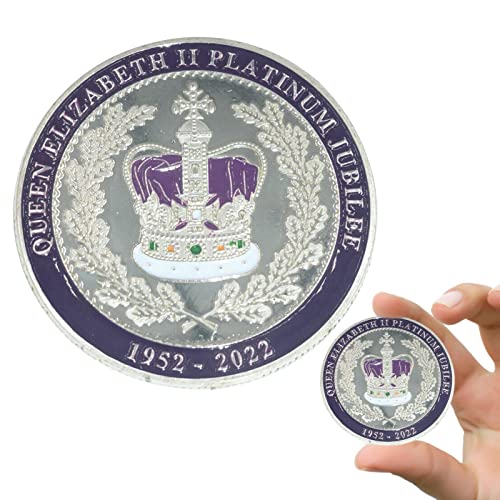 Ailopta Monete Commemorative della Regina Elisabetta II Britannica, Platinum Jubilee Queen Elizabeth II Keepsake, 1952-2022 The Queen Memorabilia Coin, Monete Commemorative in Metallo