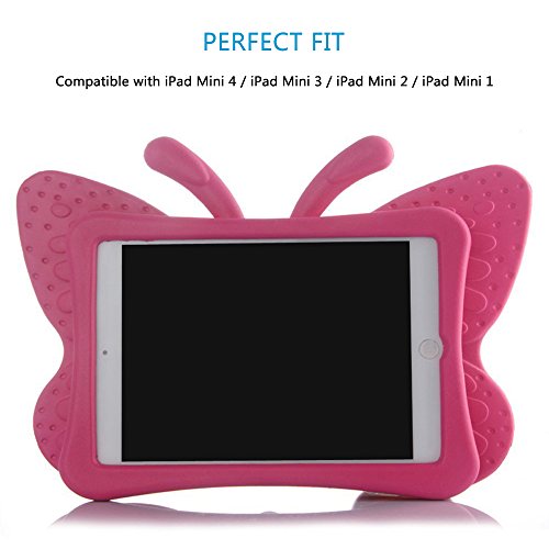 Ailrinni - Custodia per iPad Mini, a forma di farfalla, con supporto, a prova di bambino, antiurto, per Apple iPad Mini 4/Mini 3/Mini 2/Mini 1, rosa Rose Red iPad Mini 4/ Mini 3/ Mini 2/ Mini 1