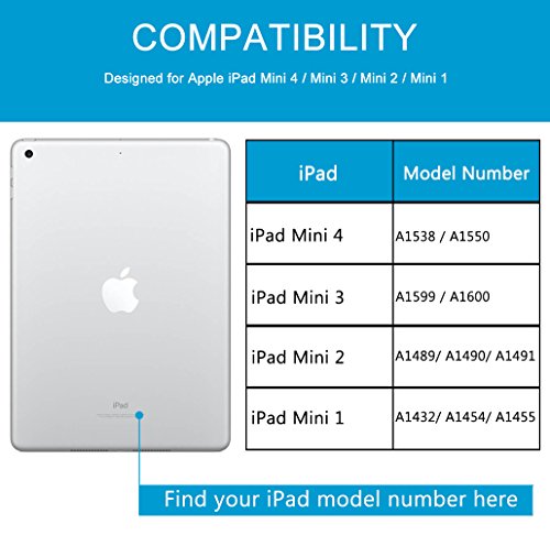 Prodotto progettato per iPad Mini 4 (A1538/A1550), iPad Mini 3 (A1599/A1600), iPad Mini 2 (A1489/A1490/A1491), iPad Mini 1 (A1432/A1454/A1455).