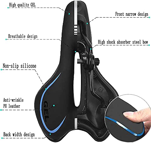 AIlysa Sella per Bici Mountain in Gel, Sella per MTB, Sella Bici Comoda da Corsa, Sedile Bicicletta Comodo Ergonomico Impermeabile e Traspirante, con Riflettente, per Mountain Bike y Bici da Strada