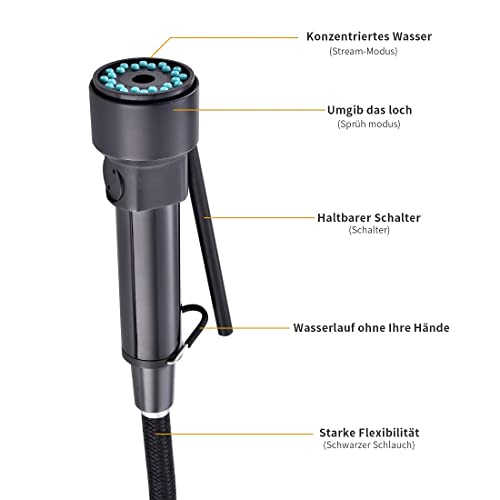 AIMADI LED Rubinetto Miscelatore da Cucina Rubinetto da Cucina con Doccia Rubinetto Lavello Estensibile Rubinetto a Molla a Spirale Rubinetto Lavello da Cucina Nero
