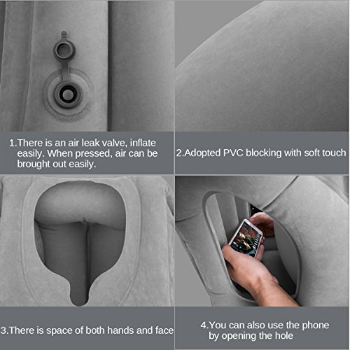 Aimego Cuscino da Viaggio Gonfiabile Cuscino d'Aria Gonfiabile/Cuscino da Collo Pieghevole e Portatile con Supporto Completo per Il Corpo e la Testa,per Aerei, Automobili, Scuole,Uffici,Grigio