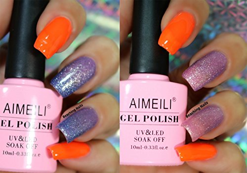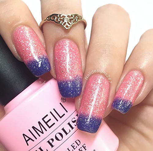 AIMEILI Soak Off UV LED Samlto in Gel Semipermanente che Cambia Colore con la Temperatura - New Glitter Purple To Pink (TC15) 10ml