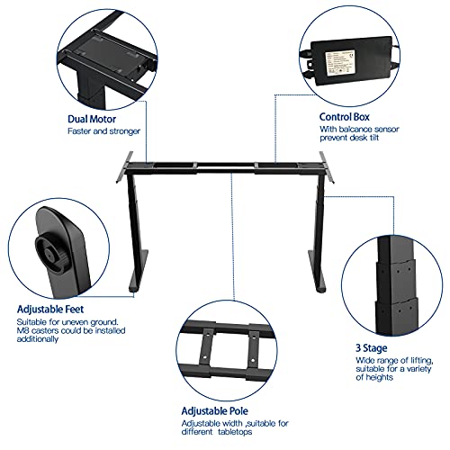 AIMEZO Scrivania Regolabile in Altezza Scrivania Elettrica, Telaio da Tavolo con Motori può sopportare 120 kg, Memoria 4 Tastiere Posizioni, Larghezza Regolabile, Nero