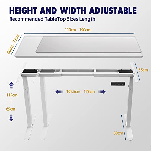 【Regolabile in Altezza】Questo telaio del tavolo regolabile in altezza è stato testato con una capacità di carico di 120 kg. L'area regolabile in altezza: 69-115 cm e l'area regolabile in larghezza: 107,5-175 cm. Adatto per la maggior parte delle dimensioni del desktop.