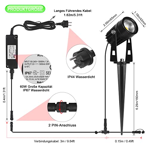 ◆ 【Faretto da terra a LED regolabile】 Angolo di diffusione di 45°, la testa luminosa del faretto da giardino può essere ruotata di 360° in orizzontale o in verticale e consente così un orientamento individuale. Materiali avanzati migliorati, perfetti come lampada per piante, luce per terrazze, lampioni e illuminazione esterna per laghetti e pareti. (Nota: se hai bisogno di più cavi, visita il nostro ASIN B08FBVKY7W e B08FBV44Z8).