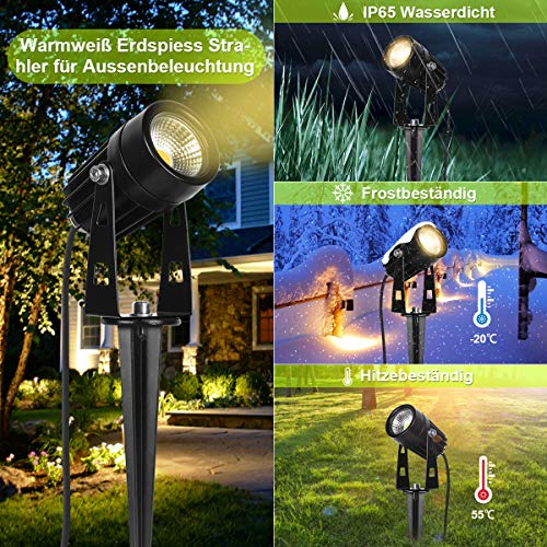 ◆【Set di 10 lampade da giardino super luminose con picchetto】Aggiorna i chip LED COB, 375 lm per faretto, per un totale di 3750 lm, più stabile e luminoso rispetto ai chip LED standard. Il faretto da giardino bianco caldo può fornire abbastanza luce e creare un'atmosfera confortevole per il vostro patio, veranda, sentiero, ponte, piscina, cortile, giardino, garage, vialetto, sentiero, ecc.