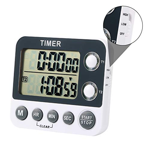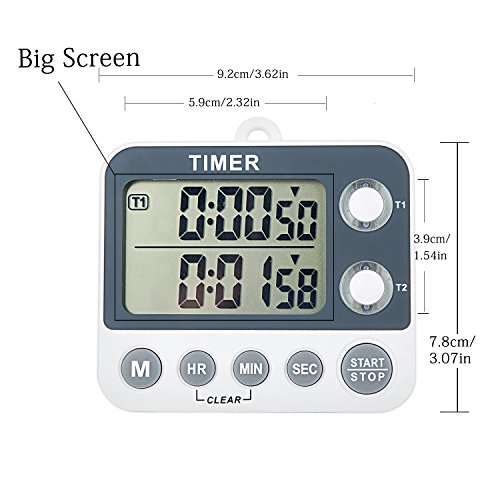Aimilar, Timer digitale da cucina magnetico, con schermo grande, conto alla rovescia, timer, orologio, 2 canali, impostabile fino a 99 ore