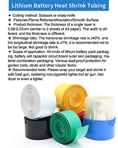 ➽ Prestazioni morbide e stabili: tubo termorestringente in PVC di alta qualità per batterie 18650. Isolamento eccellente, rapido restringimento. Ampiamente utilizzato in confezione combinata di alluminio, condensatori elettrolitici, batterie, componenti elettronici, illuminazione, perni a led, bocche di bottiglia, ecc. Per abbellire l'aspetto, l'isolamento, la resistenza alla corr