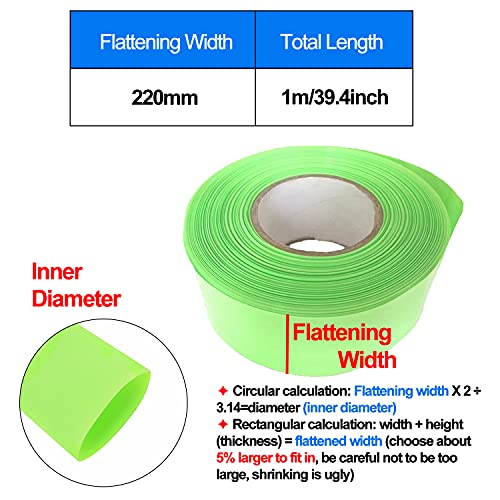 AIMIMI Tubo Termorestringersi Termico Batteria al Litio Pannello in Plastica Tubo della Pelle Pellicola Liscio Tender Tender Green Lunghezza 1M, Larghezza Appiattiente,220mm
