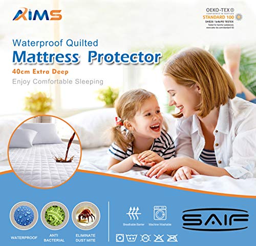 AIMS, Coprimaterasso trapuntato impermeabile in microfibra, con angoli, con fascia elastica, profondità extra di 40 cm (King)