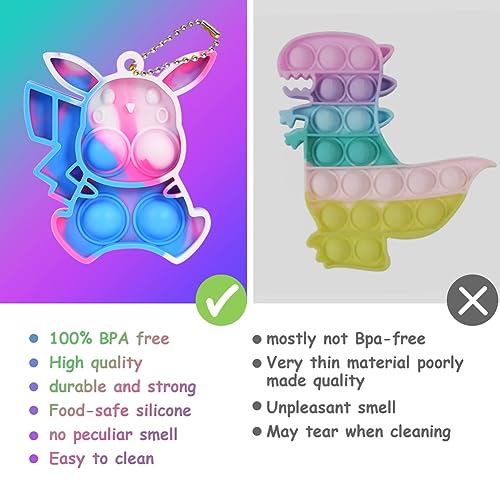 【SICURO E AFFIDABILE】 Il portachiavi Ainiv Mini Pop Push It Fidget Toy è realizzato in eccellente materiale siliconico. Il materiale è sicuro, atossico e inodore, resistente alla caduta, all'usura. La superficie è liscia e i pulsanti sono morbidi, non danneggerà la pelle del tuo bambino, puoi giocare con sicurezza.