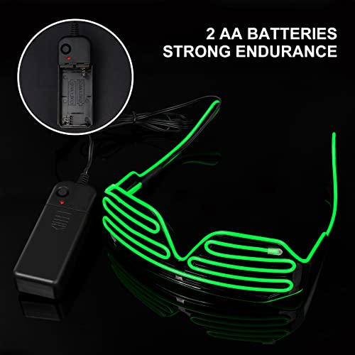 【ALTA QUALITÀ】 Questi occhiali luminosi sono realizzati con materiali luminosi EL di alta qualità, offrendo effetti visivi eccellenti e tempo di illuminazione continua di notte. Con il comodo design ergonomico, è un accessorio perfetto e adatto a uomini, donne e bambini.