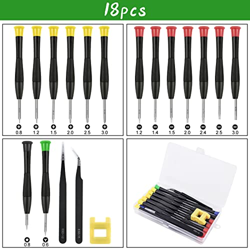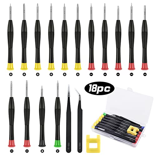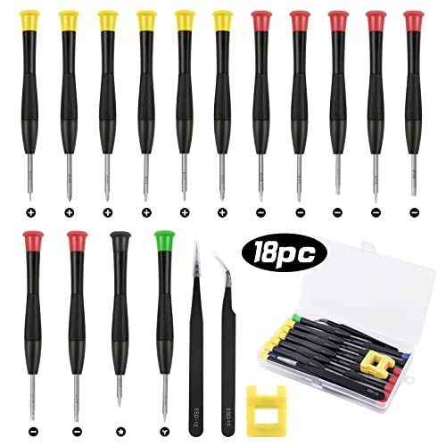 Ainiv Cacciavite di Precisione, set di piccoli cacciaviti per occhiali da 18 pezzi, adatto per gioiellieri di orologi PS4, con 2 pinzette, magnetizzatore e scatola in PP