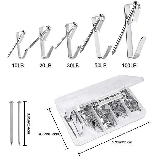 Ainiv 120 Pezzi Ganci per Quadri, Ganci per Quadri Muro Set di Ganci in Metallo per Quadri, 5 Misure-10/20/30/50/100LB con 60 Chiodi, Photo Frame Ganci per Appendere Foto Specchi Decorazioni - Argento