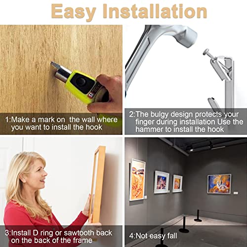 【FACILE DA USARE】 Tutto quello che devi fare è martellare 1 chiodo e appendere l'immagine in meno di 5 minuti. I chiodi affilati sono scivolati nel muro a secco molto facilmente. Quando si desidera modificare la posizione della cornice digitale, i ganci per foto possono essere rimossi con cura dal muro per il riciclo e il riutilizzo.