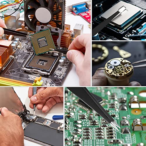 ❤️【ANTISTATICO】Ogni pinzetta è rivestita con un rivestimento ESD resistivo per evitare che l'elettricità statica danneggi i componenti elettronici. Adatto per assemblare, sviluppare o riparare parti elettroniche e di computer. Evitare l'elettricità statica da danni alle apparecchiature elettroniche sensibili.