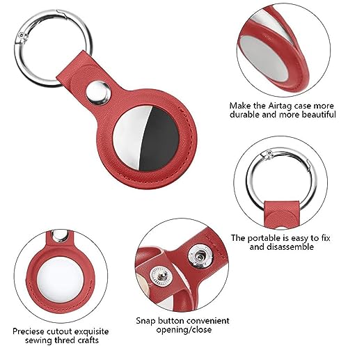 Ainiv Portachiavi AirTag, Rosso Custodia in Pelle, Localizzatore di Chiavi Portatile per Zaini e Animali Domestici, Mini Cover Protettiva, Tracker per Cordino AirTag