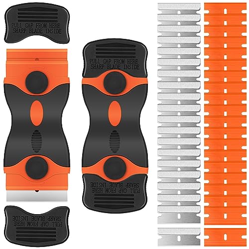 Ainiv 2pz Raschietto per Piano Cottura In Vetro, con 40 Lame di Ricambio Per Raschietto, Multiuso, per Pulizia Per Etichette, Decalcomanie, Calafatoio, Vernice In Vetro (Arancione - Doppia Testa)