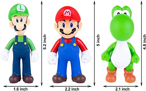 AINOLWAY Set di 3 personaggi Super Mario - Mario & Luigi - Yoshi & Mario Bros action figure Mario in PVC