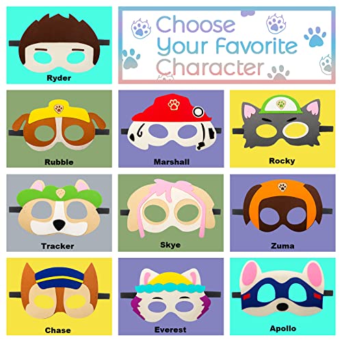 【La confezione contiene】 10 maschere per cani in feltro con diversi design di Ryder, Rubble, Marshall, Rocky, Tracker, Skye, Zuma, Chase, Everest, Apollo.