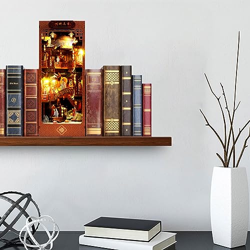 AIOKMBR Kit Nook Book Nook Libro 3D Inserimento di libreria in Legno Decorazione con Light Light Modello di Bambola in Miniatura Fai -da -Te Kit Creativo