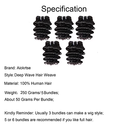 Aiokrtse fasci di capelli brasiliani onda profonda capelli vergini brasiliani fasci di tessuto 100% capelli umani colore nero naturale 5 pacchi 8 " 250 grammi
