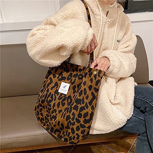 AioTio Borsa Donna Tracolla Grande, Borsa Mare Donna, Borsa Bimba Casual, Tote Bag in Velluto a Coste Ultraleggera per Shopper(Leopardo)
