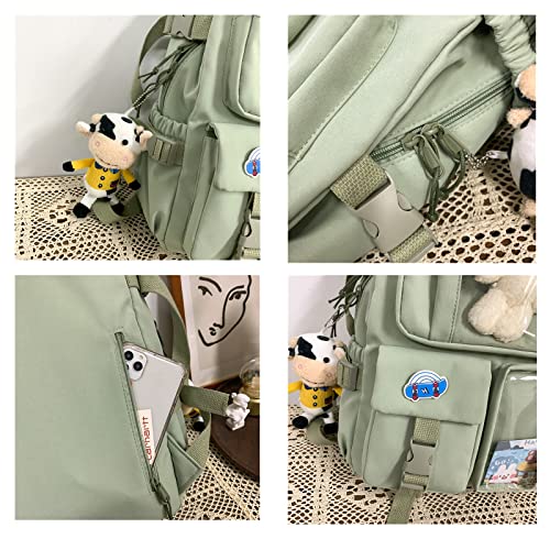【Pratico e adorabile】 Lo zaino kawaii della ragazza ha spallacci larghi regolabili, che sono spessi e comodi, riducendo efficacemente il carico sulle spalle. La borsa zainetto donna viene fornita con spille kawaii e accessori pendenti, 3 spille, 1 ciondolo con mucca, 1 simpatico orso, 1 cartone animato.