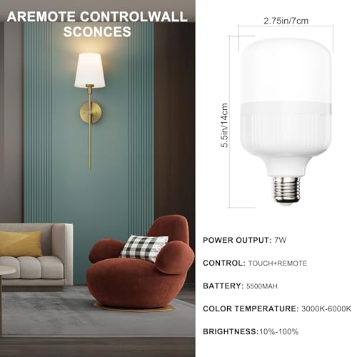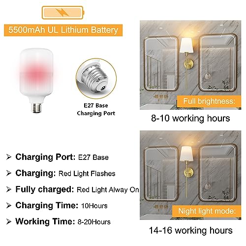 ✅【Lampada da parete ricaricabile USB 】Aipsun applique a led per interni con lampadina a batteria (lampadina, cavo di ricarica USB inclusi), lumen: 500LM, temperatura di colore: 3000K-6000K, capacità della batteria: 5500mAh, tempo di ricarica: 10 ore, tempo di illuminazione: 8-20 ore. La lampadina da parete è alimentata da 2 batterie ricaricabili, è pratica, efficiente e a risparmio energetico.